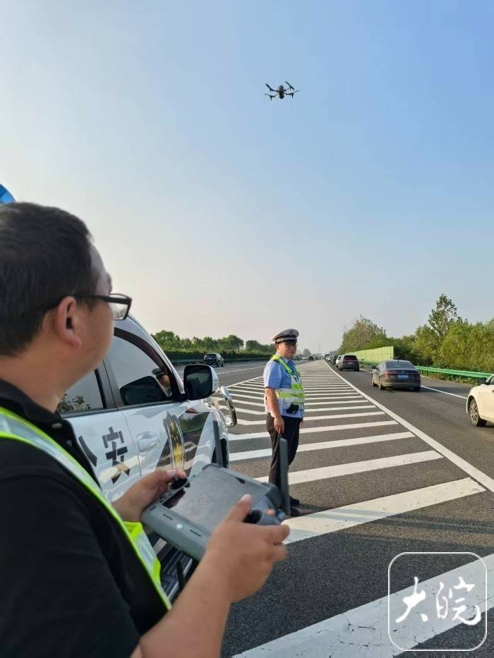 r“国庆、中秋假期,我们用无人机矩阵与地面警力紧密配合,开启‘空地联动’执法模式,高空巡逻实时监测路况,精准查处交通违法。”淮南市公安局交警支队高速一大队民警告诉大皖新闻记者,警用无人机就像“空中交警”,在辖区道路开展全天候巡逻时,空中喊话提醒安全行车注意事项,特别是遇有拥堵节点,能够快速联动疏导。